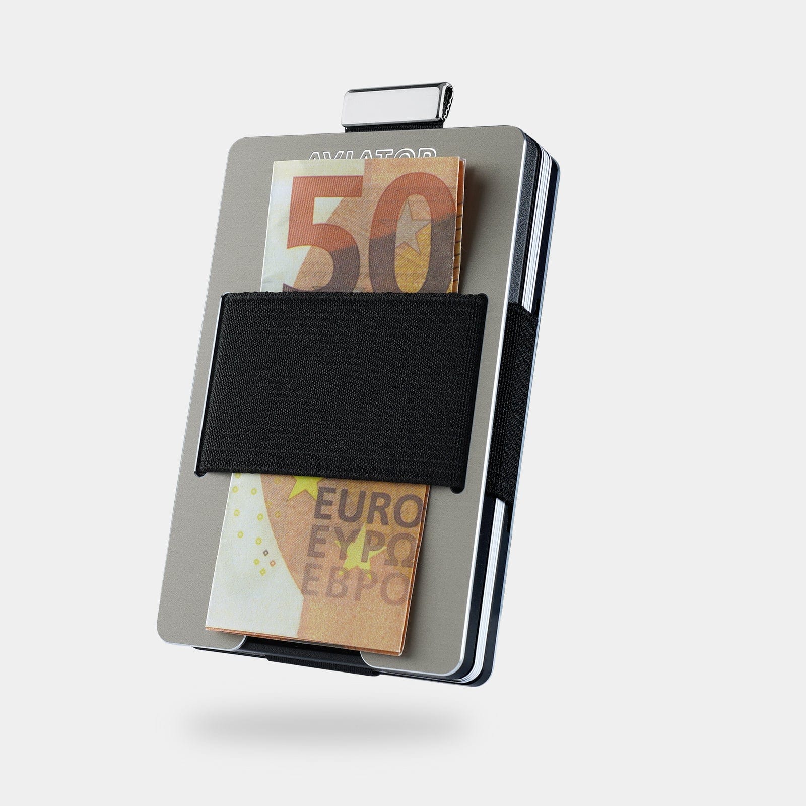The AVIATOR Gunmetal impresses with its minimalist design, flexible card capacity, and intuitive handling. Precise craftsmanship from high-quality aluminum, fast slide-access for up to 20 cards, and flexible banknote storage make it a reliable companion.